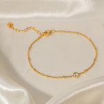 Elevate your style with the Marisol Gold Chain Anklet. Crafted from 18k PVD gold, this timeless piece features a dazzling diamond simulant for a touch of everyday luxury. Subtle yet eye-catching, it adds instant polish to any look.